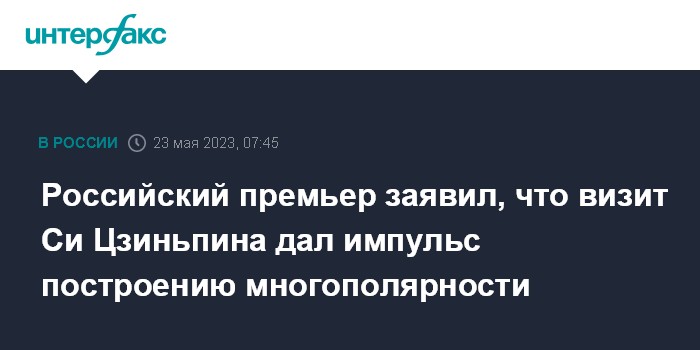 Москва. 23 мая. INTERFAX.RU - Визит в Россию в марте этого года председателя КНР Си Цзиньпина дал импульс построению новой многополярной системы международных отношений, заявил премьер РФ Михаил Мишустин.