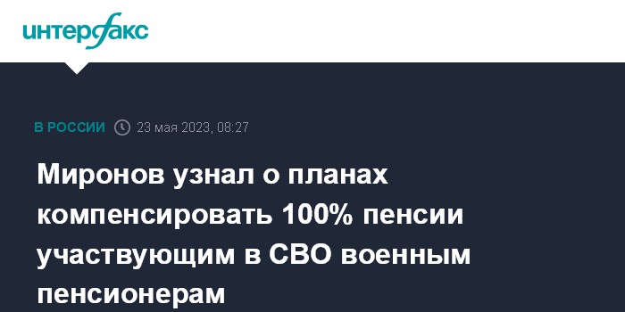 "С самого начала СВО действовал закон, по которому военный пенсионер при частичной мобилизации терял свою пенсию. Согласно готовящемуся проекту указа президента, ветераны будут получать 100% компенсацию пенсии в период службы в зоне СВО", - сказал Миронов.