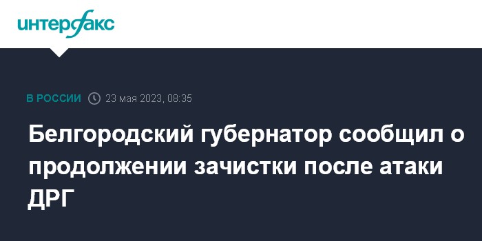 Москва. 23 мая. INTERFAX.RU - В Белгородской области продолжается зачистка приграничных населенных пунктов Грайворонского округа, в которые 22 мая проникли диверсанты, в процессе эвакуации мирного населения умерла женщина, эвакуированным еще рано возвращаться домой, сообщил в Telegram губернатор региона Вячеслав Гладков.