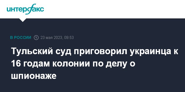 Тульский суд приговорил украинца к 16 годам колонии по делу о шпионаже