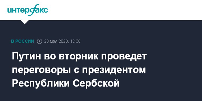 Москва. 23 мая. INTERFAX.RU - Президент РФ Владимир Путин во вторник встретится в Москве с президентом Республики Сербской (в составе Боснии и Герцеговины) Милорадом Додиком.