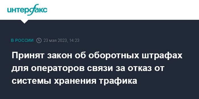 Принят закон об оборотных штрафах для операторов связи за отказ от системы хранения трафика