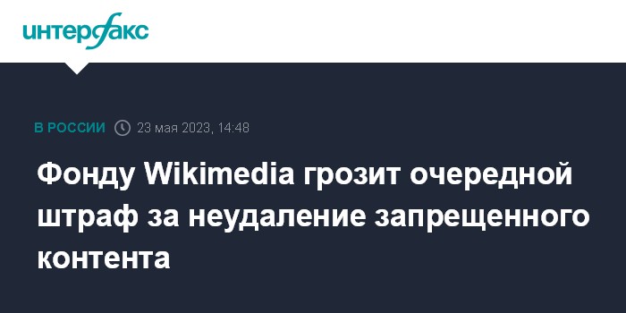 В 2023 году Wikimedia семь раз был оштрафован за неудаление запрещенной информации из "Википедии". Общая сумма штрафов, назначенных фонду по этим делам, составляет 9,9 млн руб.