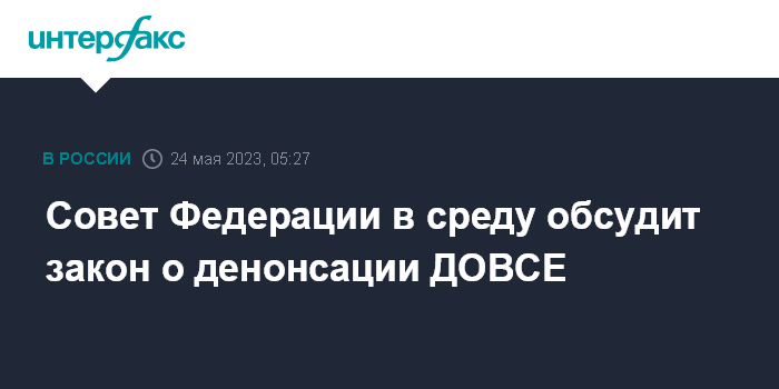 Москва. 24 мая. INTERFAX.RU - Совет Федерации на заседании в среду обсудит закон о денонсации Договора об обычных вооруженных силах в Европе (ДОВСЕ).