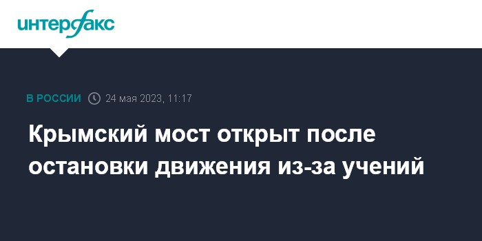 Москва. 24 мая. INTERFAX.RU - Движение автомобилей по Крымскому мосту восстановлено после остановки в среду из-за учений, сообщили журналистам в ФКУ Упрдор "Тамань".