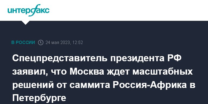Спецпредставитель президента РФ заявил, что Москва ждет масштабных решений от саммита Россия-Африка в Петербурге