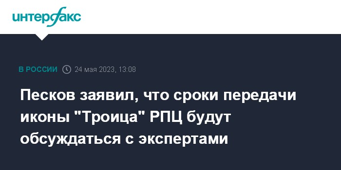 Песков заявил, что сроки передачи иконы "Троица" РПЦ будут обсуждаться с экспертами