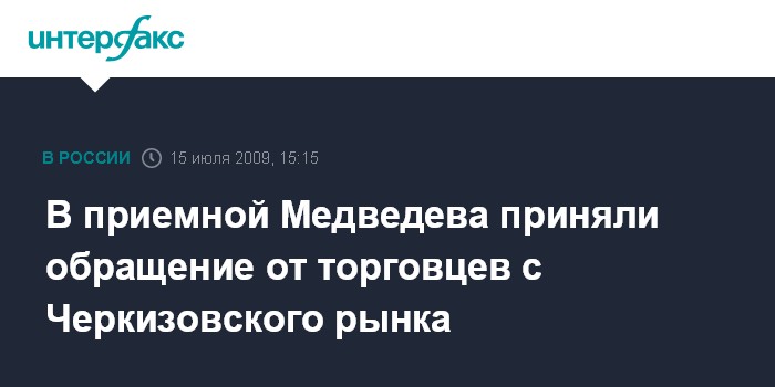 Москва. 15 июля. INTERFAX.RU - Бывшие торговцы столичного Черкизовского рынка передали обращение в приемную президента России.