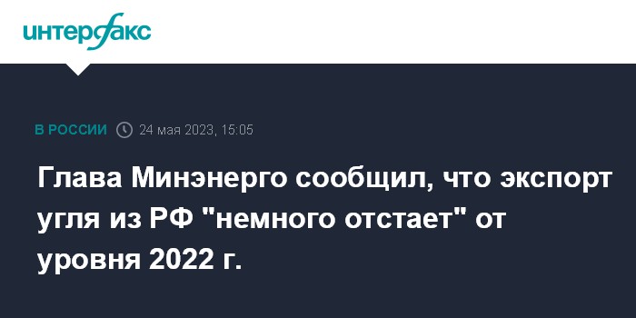 Глава Минэнерго сообщил, что экспорт угля из РФ "немного отстает" от уровня 2022 г.