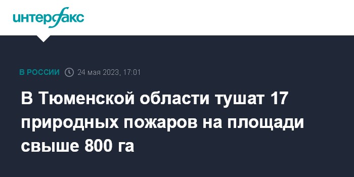 Москва. 24 мая. INTERFAX.RU - Десять природных пожаров было ликвидировано за сутки в Тюменской области: два лесных на площади 20 га и восемь ландшафтных на 144 га, сообщает информационный центр регионального правительства.