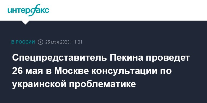 Спецпредставитель Пекина проведет 26 мая в Москве консультации по украинской проблематике