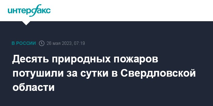 Москва. 26 мая. INTERFAX.RU - Почти два десятка природных пожаров продолжают действовать в Свердловской области, сообщает региональный департамент информационной политики.
