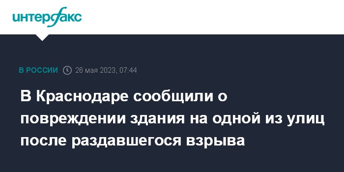 Москва. 26 мая. INTERFAX.RU - Оперштаб Краснодарского края в пятницу сообщил о взрыве, который был слышен в районе здания по улице Морской в Краснодаре.