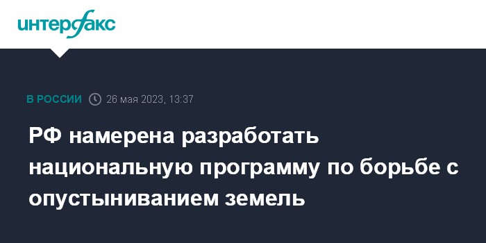 Москва. 26 мая. INTERFAX.RU - РФ до конца 2024 года создаст национальную программу по борьбе с опустыниванием земель.