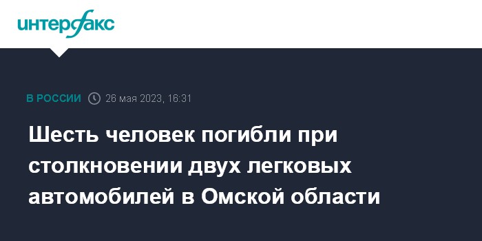 Москва. 26 мая. INTERFAX.RU - Дорожная авария с участием двух легковых автомобилей унесла жизни шести человек в Омской области.
