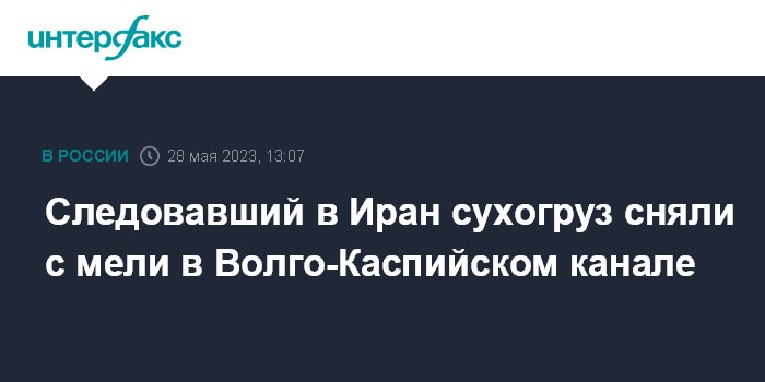 "27 мая в 19:33 (18:33 по Москве) поступило сообщение о том, что на 143,4 км Волго-Каспийского морского судоходного канала, акватория порта п. Оля, сел на мель теплоход "Порт Оля-2", следовавший в порт Амирабад, Иран. По состоянию на 13:10 (местное время - ИФ) 28 мая сухогруз "Порт Оля-2" снят с мели", - говорится в сообщении.