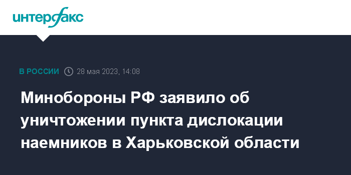 Минобороны РФ заявило об уничтожении пункта дислокации наемников в Харьковской области