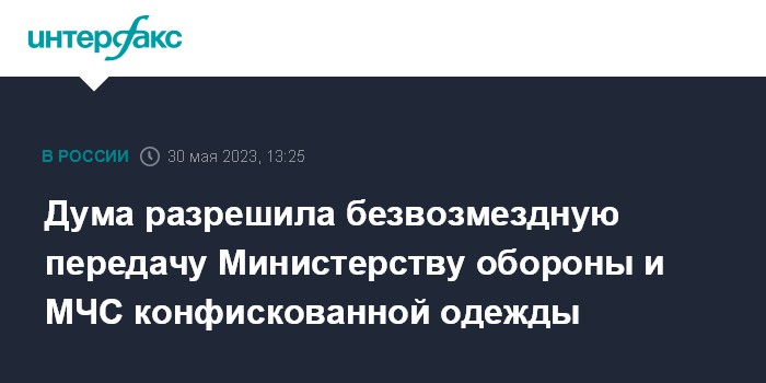 Дума разрешила безвозмездную передачу Министерству обороны и МЧС конфискованной одежды