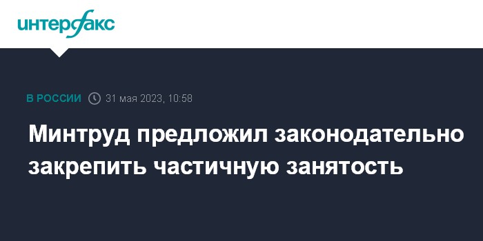 Москва. 31 мая. INTERFAX.RU - Понятие частичной занятости необходимо закрепить законодательно, сказал министр труда и социальной защиты РФ Антон Котяков.