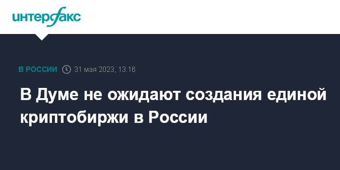 Москва. 31 мая. INTERFAX.RU - Легализация расчетов в криптовалюте для участников внешней экономической деятельности не предполагает создания одной криптобиржи в России, это будет система расчетов с возможностью участия в ней большого количества игроков, что снизит риск введения санкций.