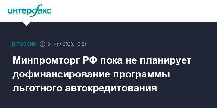 Москва. 31 мая. INTERFAX.RU - Дофинанстрование программы льготного кредитования для поддержки спроса в автопроме пока не планируется, механизм продолжит действовать для отдельных категорий граждан, сообщил журналистам вице-премьер, глава Минпромторга РФ Денис Мантуров.