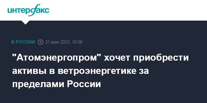 Москва. 31 мая. INTERFAX.RU - "Атомэнергопром" в 2023 году планирует заключение первых сделок по приобретению проектов в ветроэнергетике за пределами России, говорится в годовом отчете компании.