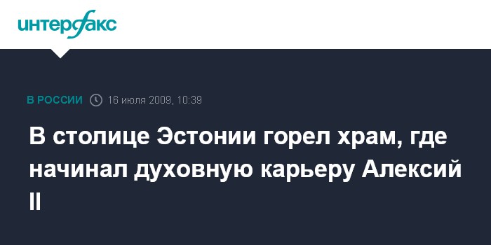 В столице Эстонии горел храм, где начинал духовную карьеру Алексий II