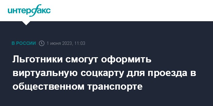 Москва. 1 июня. INTERFAX.RU - Российские льготники смогут оформить виртуальную социальную карту для проезда в общественном транспорте в рамках эксперимента, который начался 1 июня, сообщает сайт правительства. Постановление об эксперименте подписал премьер-министр Михаил Мишустин.