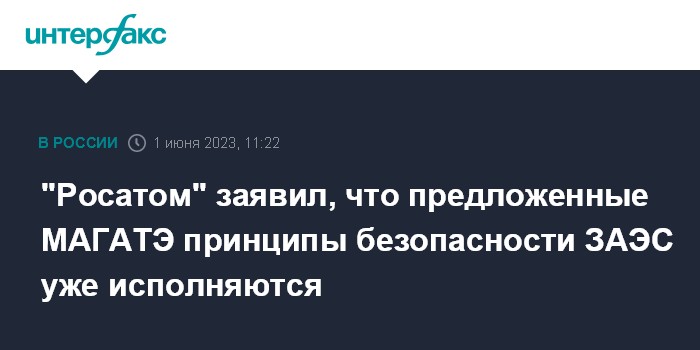 "Росатом" заявил, что предложенные МАГАТЭ принципы безопасности ЗАЭС уже исполняются