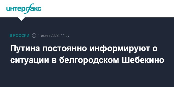 Москва. 1 июня. INTERFAX.RU - Силовые ведомства и белгородские власти постоянно докладывают президенту РФ Владимиру Путину о ситуации в Шебекино Белгородской области, включая меры по временному размещению желающих жителей района, сообщил пресс-секретарь главы государства Дмитрий Песков.