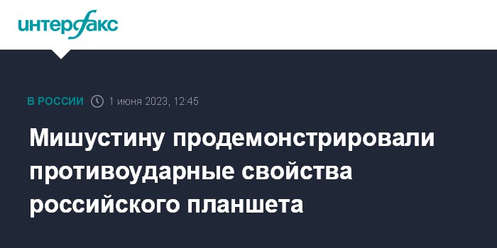 Москва. 1 июня. INTERFAX.RU - Премьер-министру Михаилу Мишустину на конференции "Цифровая индустрия промышленной России" (ЦИПР) в нижнем Новгороде показали отечественный планшет и продемонстрировали его противоударные свойства.