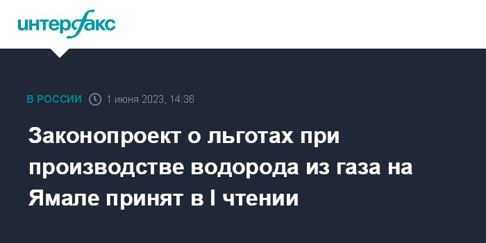 Законопроект о льготах при производстве водорода из газа на Ямале принят в I чтении