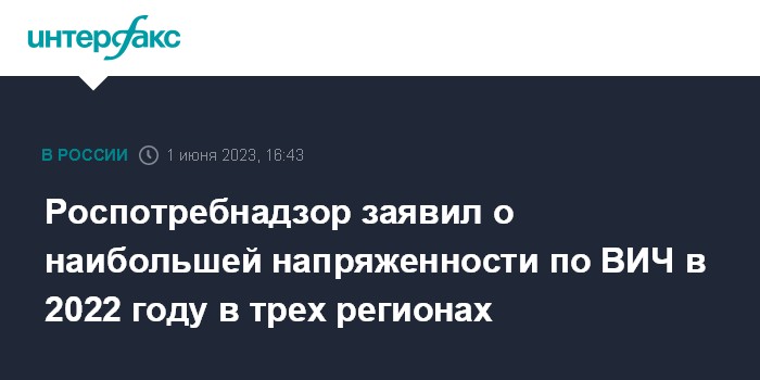 Роспотребнадзор заявил о наибольшей напряженности по ВИЧ в 2022 году в трех регионах