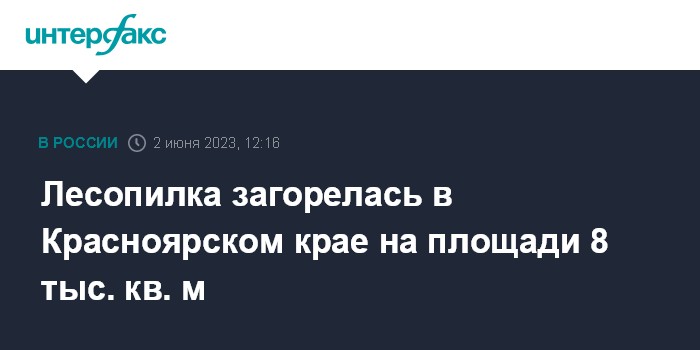 Москва. 2 июня. INTERFAX.RU - Крупный пожар тушат на лесоперерабатывающем предприятии в поселке Тасеево Красноярского края, сообщает пресс-служба Главного управления МЧС по региону в пятницу.