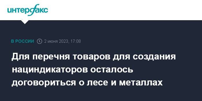 Для перечня товаров для создания нациндикаторов осталось договориться о лесе и металлах