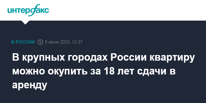 В крупных городах России квартиру можно окупить за 18 лет сдачи в аренду