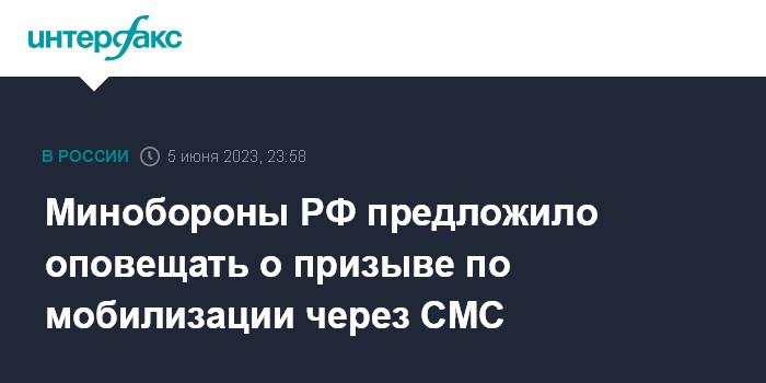 Москва. 5 июня. INTERFAX.RU - Минобороны РФ предлагает внести поправки в положение о призыве граждан по мобилизации, в частности предлагается оповещение мобилизованных через СМС-рассылку.