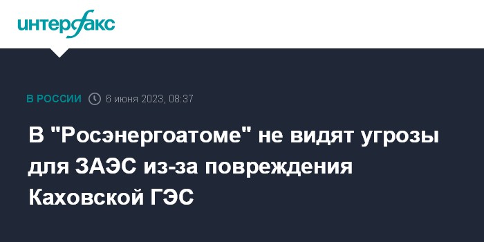 Москва. 6 июня. INTERFAX.RU - Разрушение задвижек Каховской ГЭС в Херсонской области никак не повлияет на функционирование Запорожской АЭС в Энергодаре, сообщил "Интерфаксу" советник главы концерна "Росэнергоатом" Ренат Карчаа.