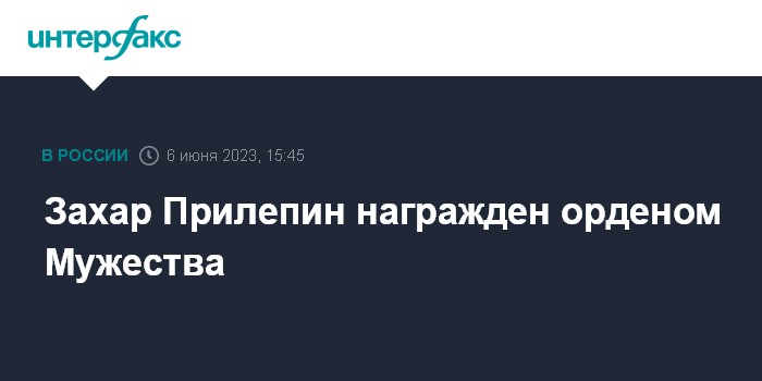 Москва. 6 июня. INTERFAX.RU - Президент РФ Владимир Путин наградил писателя Захара Прилепина орденом Мужества.