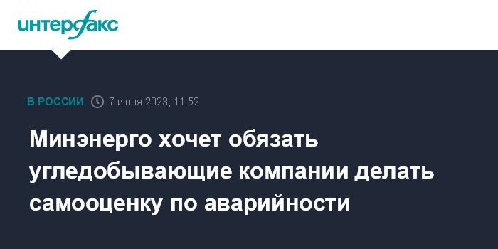 Москва. 7 июня. INTERFAX.RU - Минэнерго хочет обязать угольные компании каждые полгода проводить самооценку с точки зрения рисков возникновения аварий, а затем представлять результаты в министерство и Ростехнадзор, сообщил замдиректора департамента угольной промышленности Минэнерго Михаил Верзилов.
