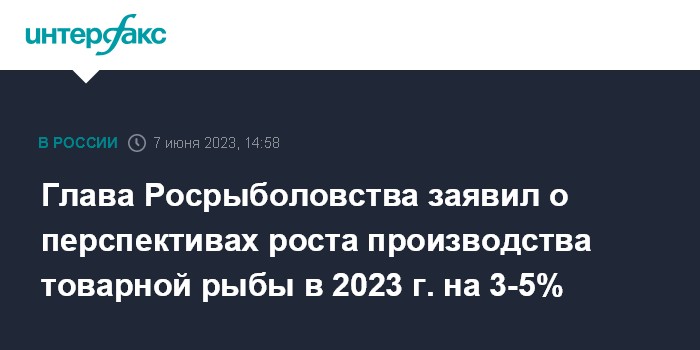 Глава Росрыболовства заявил о перспективах роста производства товарной рыбы в 2023 г. на 3-5%