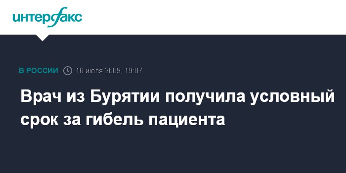 Москва. 16 июля. INTERFAX.RU - Суд в Бурятии вынес обвинительный приговор участковому врачу-педиатру одной из поликлиник города Улан-Удэ, из-за непрофессионализма которой умер двухлетний ребенок.