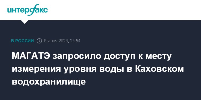 Москва. 8 июня. INTERFAX.RU - Инспекторы МАГАТЭ хотят замерить уровень воды в Каховском водохранилище для дальнейшей оценки ситуации на Запорожской АЭС (ЗАЭС), заявили в агентстве.