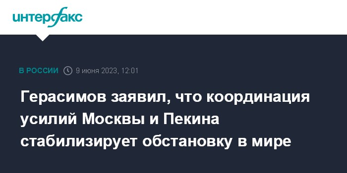 Герасимов заявил, что координация усилий Москвы и Пекина стабилизирует обстановку в мире