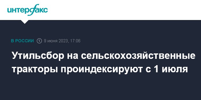 Москва. 9 июня. INTERFAX.RU - Правительство утвердило индексацию утилизационного сбора на несколько категорий сельскохозяйственных тракторов с 1 июля 2023 года, сообщила пресс-служба Минпромторга.