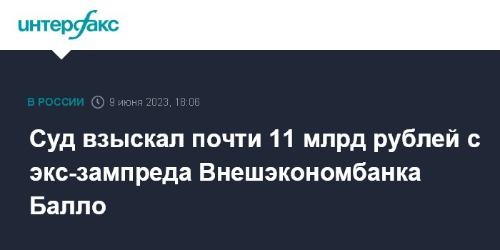 Суд взыскал почти 11 млрд рублей с экс-зампреда Внешэкономбанка Балло