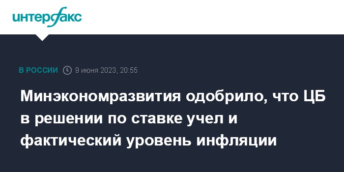 Минэкономразвития одобрило, что ЦБ в решении по ставке учел и фактический уровень инфляции