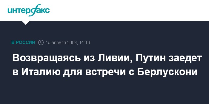 Возвращаясь из Ливии, Путин заедет в Италию для встречи с Берлускони