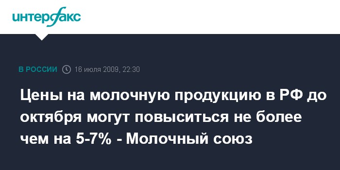 Цены на молочную продукцию в РФ до октября могут повыситься не более чем на 5-7% - Молочный союз