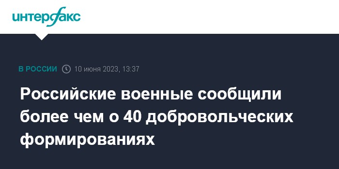 Российские военные сообщили более чем о 40 добровольческих формированиях